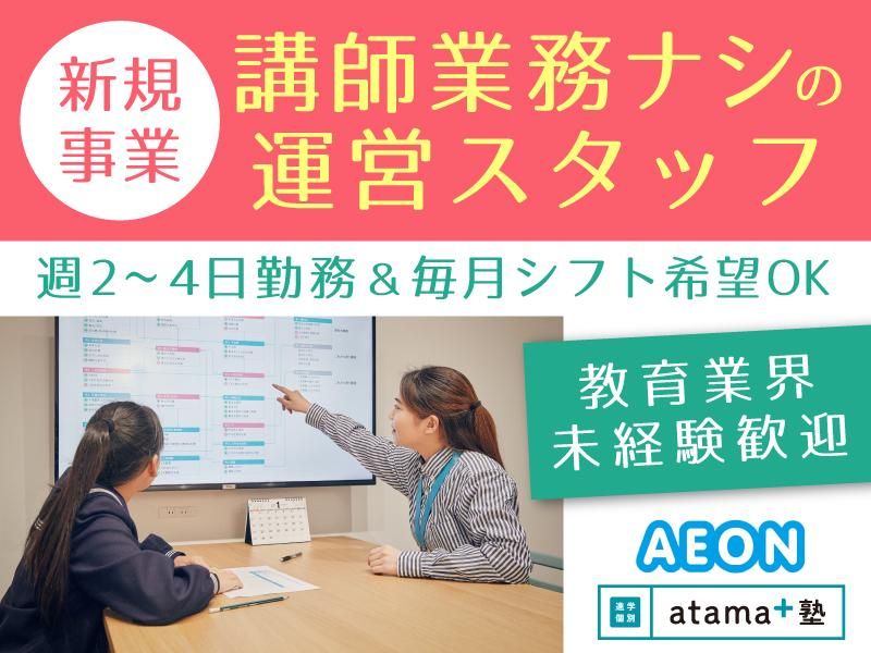 | 仕事内容 | ※生徒への授業・教科指導は行いません。 ・校舎長不在時の校舎運営業務補助 ・生徒の学習進捗管理 ・生徒への声がけ/サポート ・教室の清掃・機材・備品の管理 ・近隣学校付近でチラシやノベルティ配布 ・他、各種事務作業 など 生徒への授業・教科指導は行いません。 あくまでも、「atama+塾」の事務として 校舎長をサポートする業務がメインです |